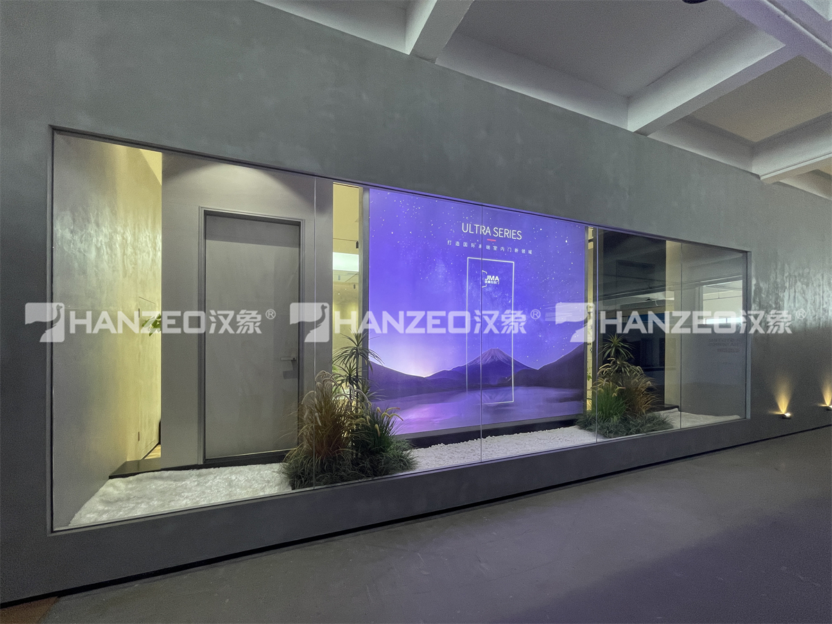 坚美铝业作为国内门窗行业的标杆企业,亟需一个兼具品牌调性与产品展示力的空间,向客户直观呈现旗下「JMA 坚美极致门」系列产品的工艺与品质。汉象展览作为专业展厅设计公司,承接了本次 300㎡展厅的全案设计与施工,以「极简美学 + 场景化体验」为核心,打造了一个符合高端品牌定位的沉浸式门窗展厅。