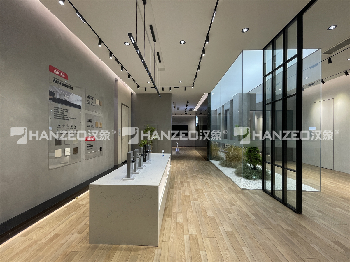 2、从墙面微水泥工艺、地面木纹铺贴,到灯光系统调试、玻璃隔断安装,每一处细节都遵循高端展厅标准,打造出兼具美观与实用性的展示空间。