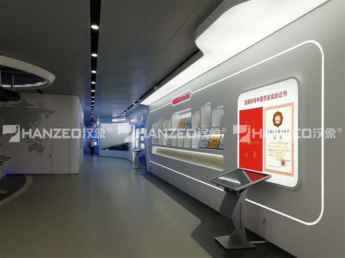 3、展厅设计深度融入坚美铝业 “坚持追求” 的品牌理念,在荣誉展区重点呈现中国质量奖等核心资质,以发光展墙、电子证书等形式强化品牌公信力;在空间设计中融入铝型材元素,从外立面造型到内部结构细节,呼应企业主营业务,打造专属品牌记忆点,实现展厅设计与品牌文化的深度绑定。