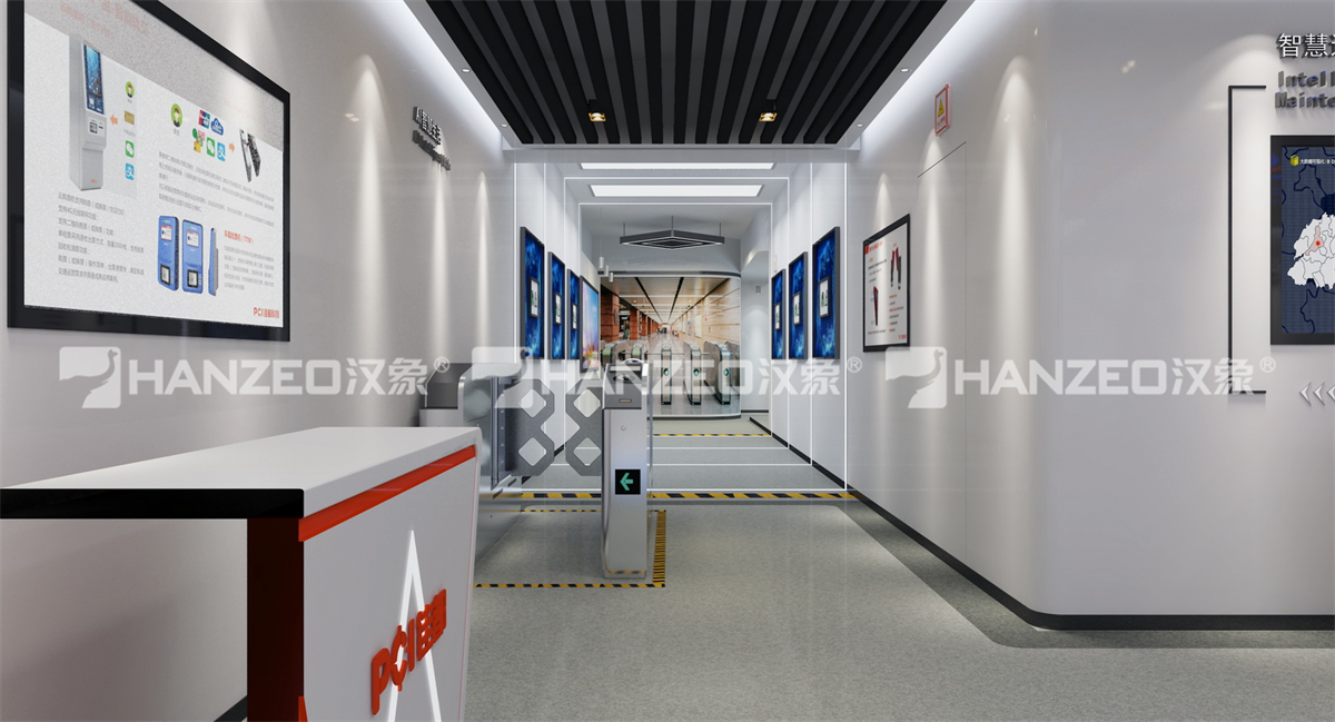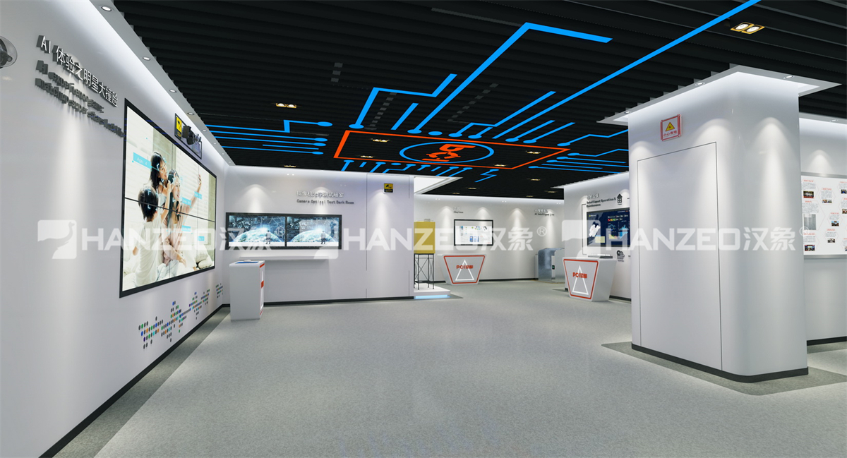 展厅科学划分品牌文化区、技术研发区、产品展示区、互动体验区、洽谈区五大模块:品牌区呈现企业发展历程与实验室资质;产品区通过实物展陈、图文结合,全系列展示智慧交通、物联网芯片等核心产品;互动区设置闸机模拟、AI 体验等场景,实现 “展示 - 体验 - 洽谈” 的全流程闭环。