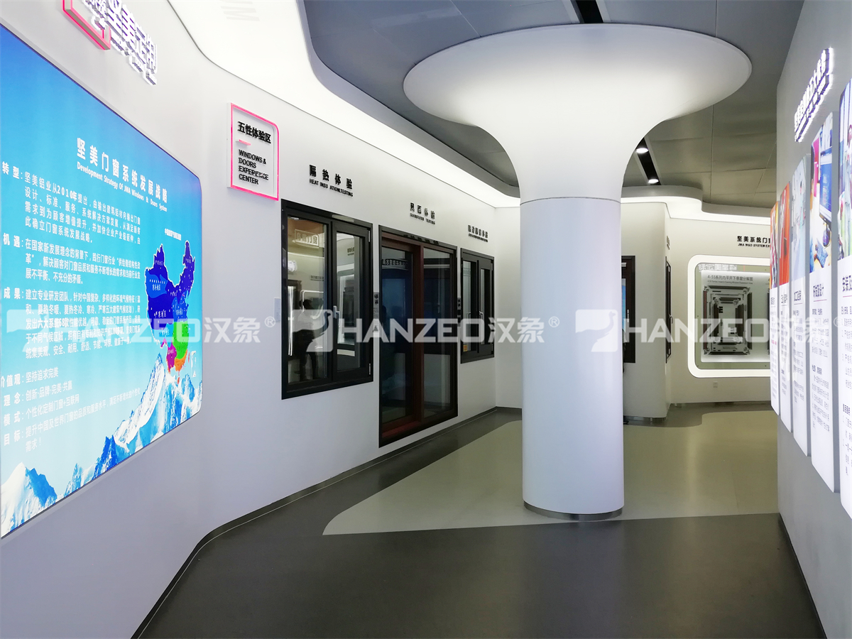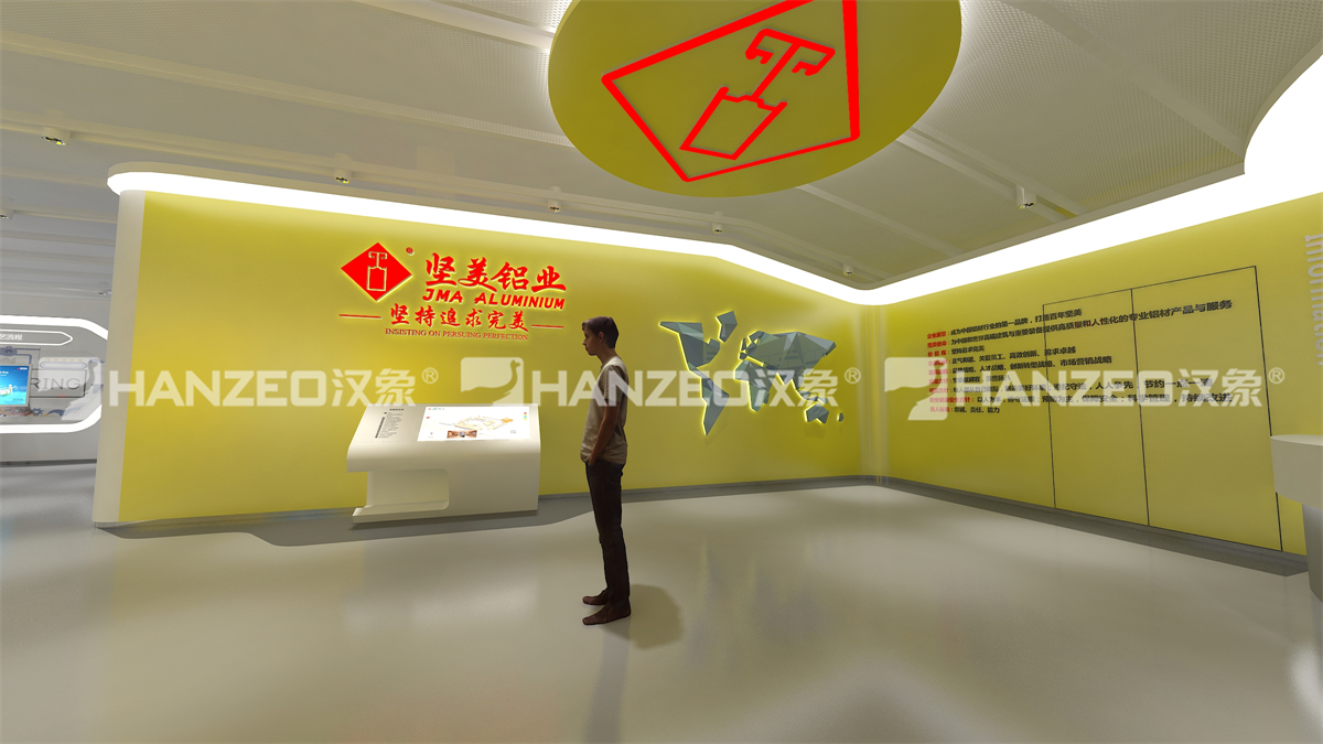 汉象展览作为专业展厅设计公司,以 “科技赋能品牌,匠心传承精神” 为核心,结合坚美铝业“质量立企、创新驱动”的发展理念,从空间规划、科技融合到细节表达,构建出兼具专业性与感染力的展示体系。