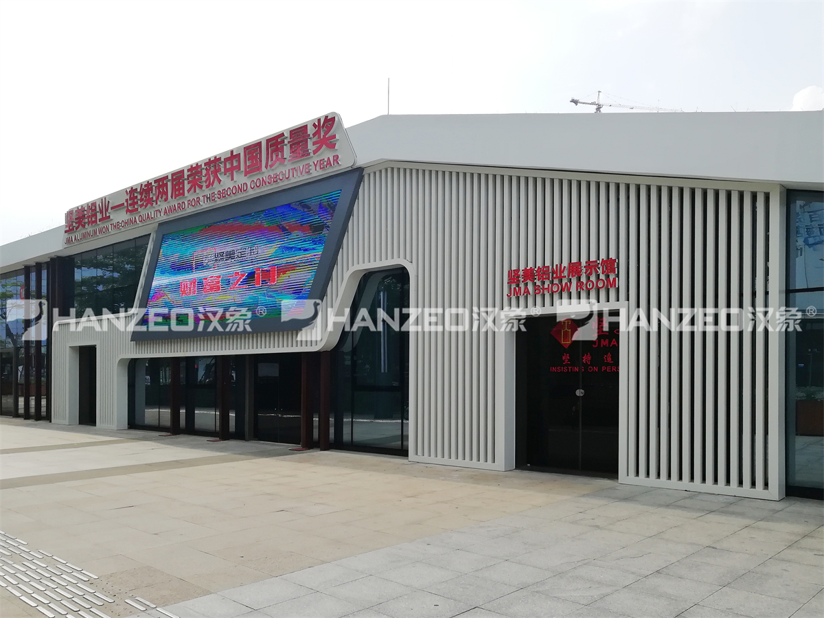 1、展厅以 “品牌历程 - 技术实力 - 产品应用 - 荣誉见证 - 互动体验” 为逻辑动线,从外立面现代简约的铝型材格栅造型,到内部流畅的弧形展墙、分层式空间设计,实现参观动线无死角,让观众循序渐进了解坚美铝业的发展脉络。同时结合多媒体展厅设计施工技术,打造沉浸式展示场景,强化品牌记忆点。